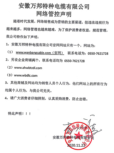 鄭重聲明:安徽萬邦特種電纜有限公司官方網站為:www_lyrcsh_com.dm82.cn,除此之外無任何子網站或合作網站,其余均為假冒偽劣。電話:0550-7621728 13485756353 地 址:安徽省天長市滁州高新技術產業開發區經四路29號
